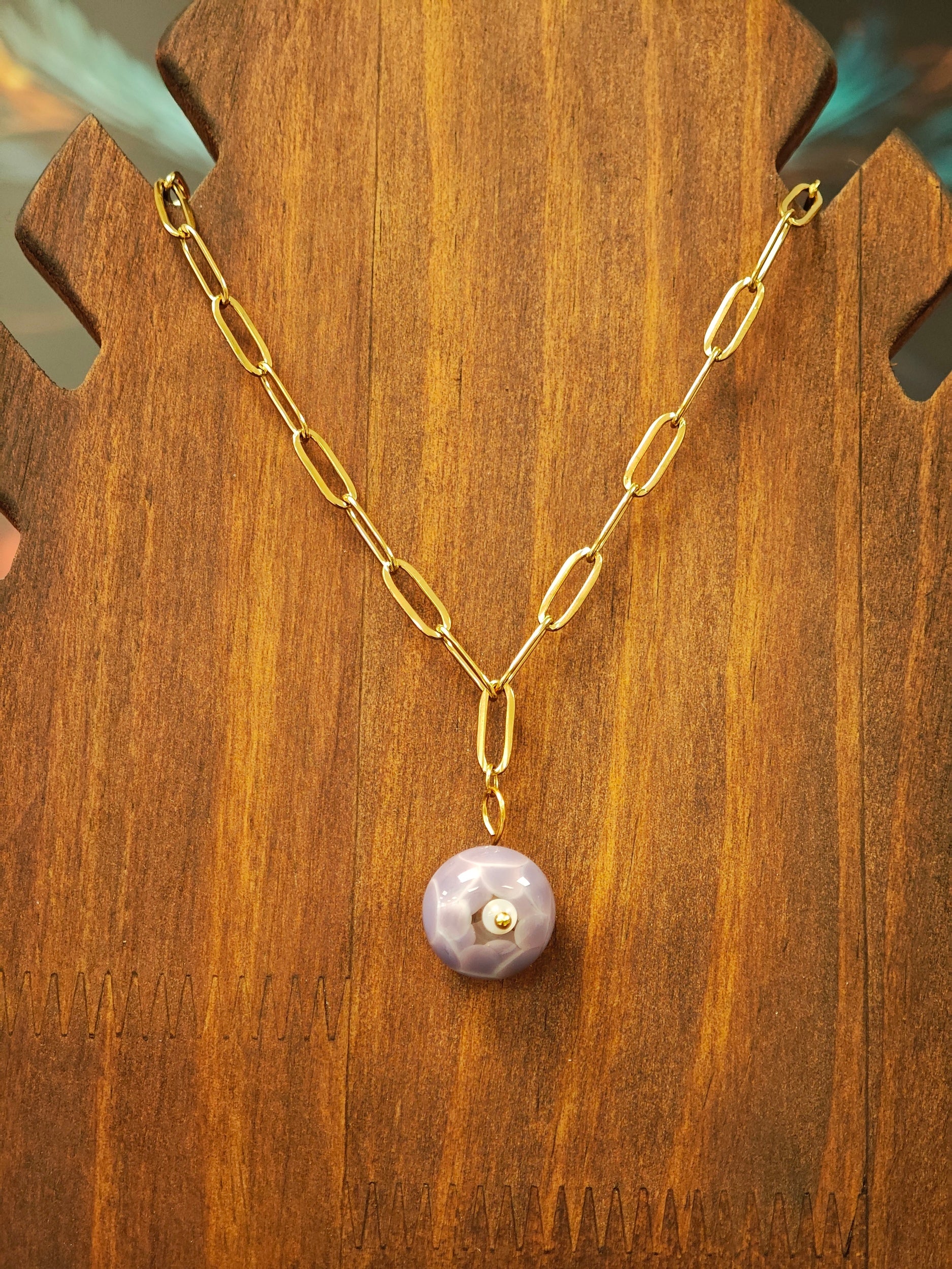 "Amithys " est un bijou artisanal fait main qui n'aime pas l'eau malgré l'acier inoxydable de la chaîne et des apprêts, les pierres naturelles, elles sont à tenir éloigné des endroits humides. La perle en verre est recuite, elle est donc renforcée aux coups et autres aléas de la vie. Ce bijou est unique et ne peut être refait à l'identique.
